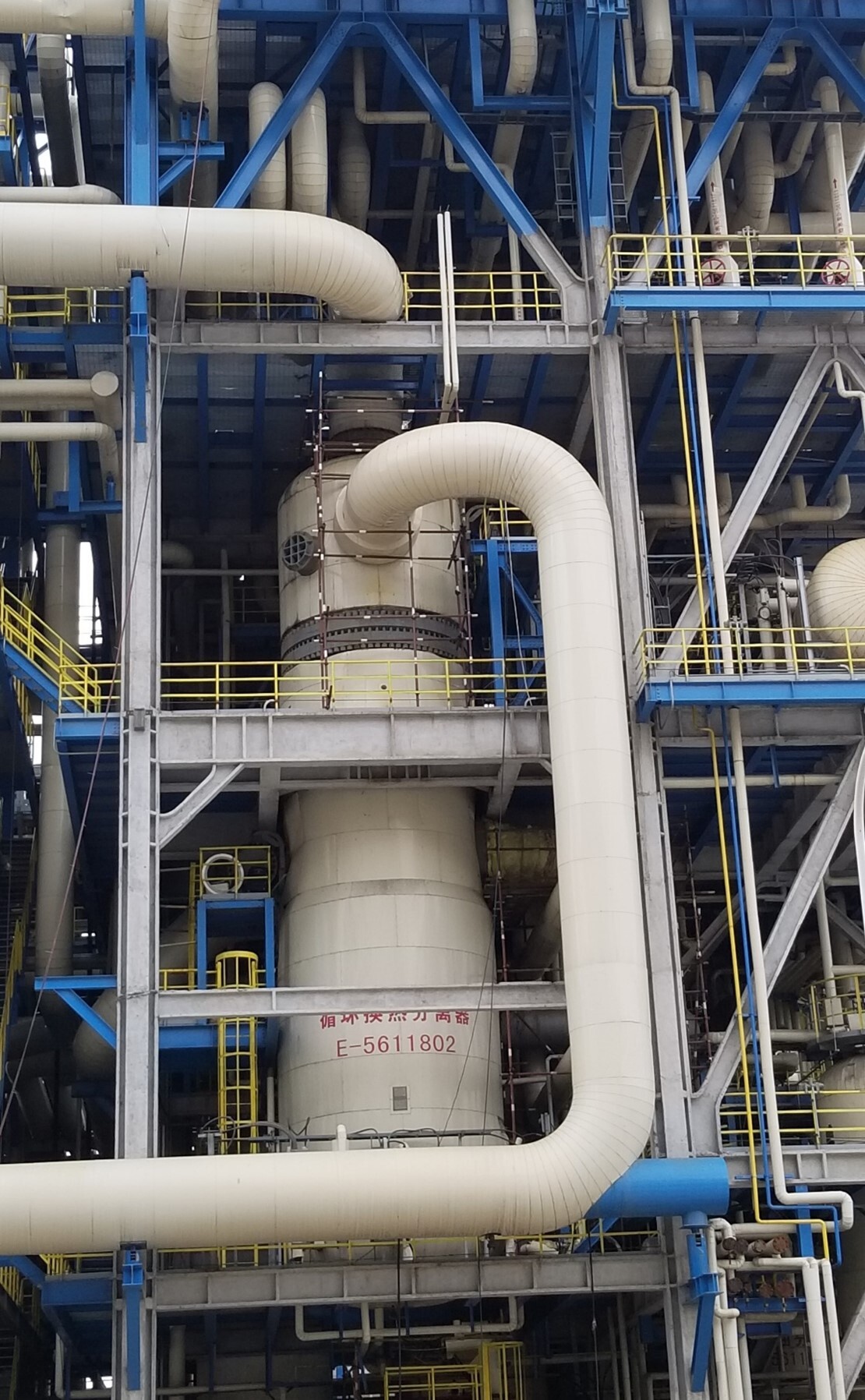 ??氧化液提濃塔內置板式熱交換器(專利設備)①高承壓性,兩側壓差可達15bar以上②實現兩側低壓降,減少能耗,某些工況下塔內聯通側壓降可低至0.05kpa③單臺塔內安裝模塊組的面積可達12000m2④設計溫度200℃以上,可實現...